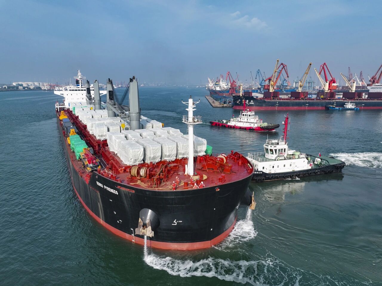 “港榮”輪從天津港駛向全球,是“一帶一路”倡議走深走實的生動展示,是深入推動港產(chǎn)城融合發(fā)展的典型成果,是綠色低碳理念在港航產(chǎn)業(yè)鏈上融合貫通的生動實踐。以此次首航為契機,天津港集團(tuán)將與招商港口等戰(zhàn)略伙伴深化全方位合作,共同探索構(gòu)建“綠色船舶+綠色港口+綠色航線”的全鏈條低碳生態(tài)體系,為傳播中國綠色發(fā)展理念、服務(wù)國家戰(zhàn)略、保障產(chǎn)業(yè)鏈供應(yīng)鏈安全穩(wěn)定貢獻(xiàn)“津港力量”。